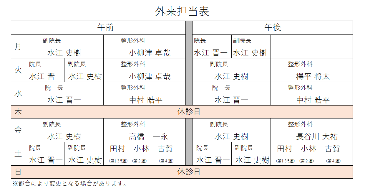 外来担当医表